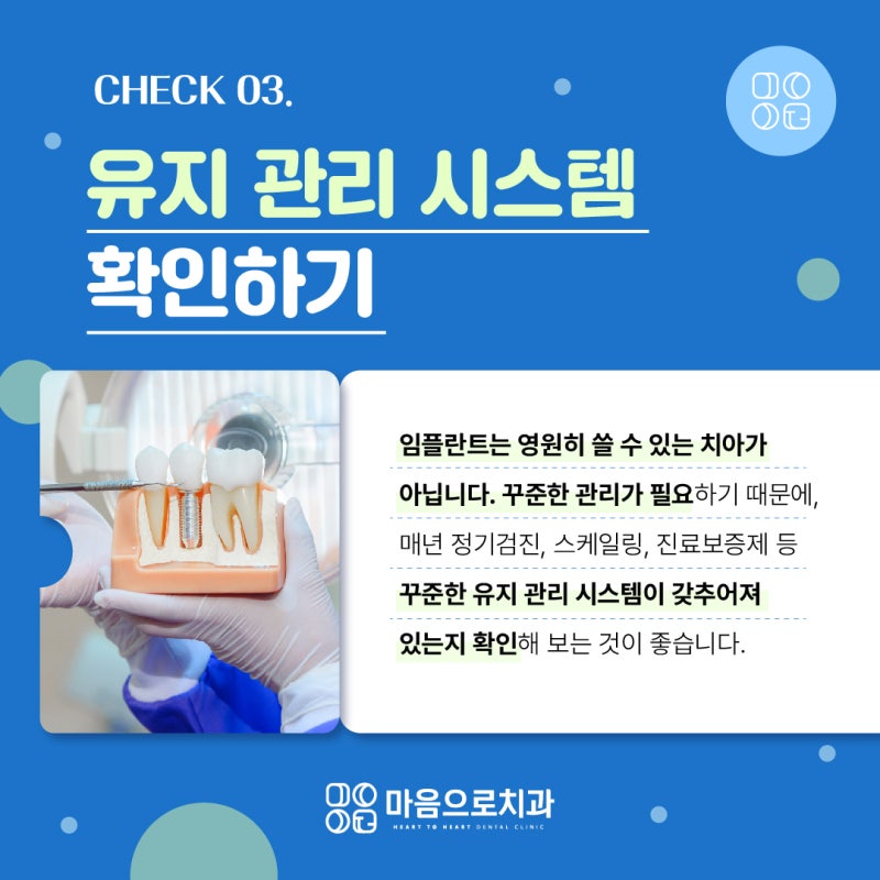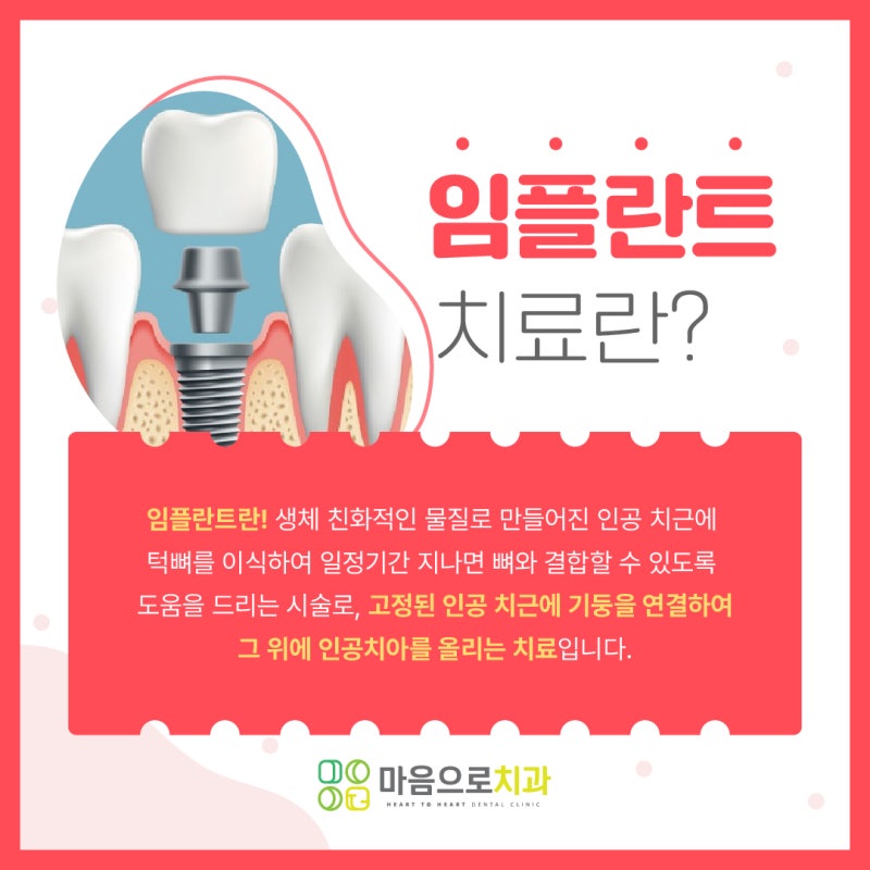 그렇다고 비용을 생각하지 말라는 것은 아닙니다.상식적인 선에서 저렴한 곳을 찾으면서 꼭 물어봐야 할 중요한 부분까지 확인하고 치과를 선택하라는 것입니다. 쉽지 않겠지만 앞으로 계속 사용해야 할 치아를 만드는 것이기 때문에 신중함이 필요합니다.만약 경제적 부담이 커서 치료가 어려운 상황이라면 건강보험 적용이 가능한지부터 알아보는 것이 좋아요.만 65세 이상으로 치아가 하나도 남아 있지 않은 상태가 아니면 급여로 치료받을 수 있습니다.1인당 최대 2개까지 적용 가능하고 30% 본인부담금만 내시면 됩니다. 개수 제한은 있지만 비용을 크게 낮출 수 있기 때문에 부담을 줄일 수 있습니다.