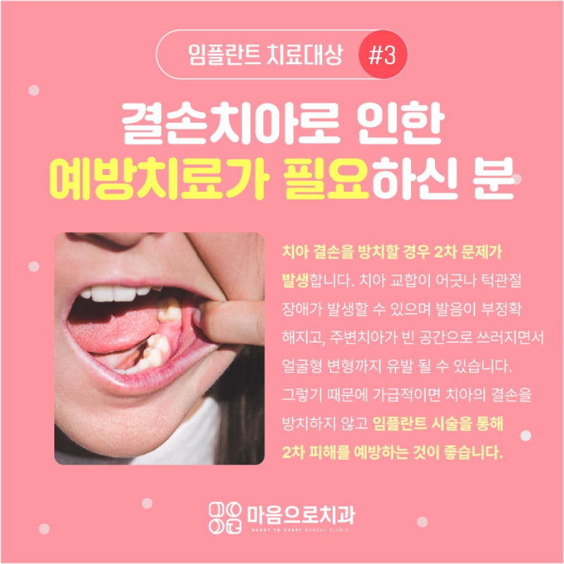 이상 대구 중구 치과와 함께 임플란트를 하기에 적절한 시기에 대해 알아봤습니다. 사실 나이보다는 성장이 끝났는지 여부와 구강 상태가 중요합니다. 사람마다 성장 속도는 다르기 때문에 언제 치료를 받으면 좋을지는 의사와 상의하여 결정하는 것이 좋아요.마지막으로 치아가 빠진 후 시간이나 비용에 대한 고민으로 치료를 미루는 분들이 많습니다. 하지만 우리 치아는 항상 그대로 있는 것은 아닙니다. 저작력의 영향으로 주변 치아가 빈 공간으로 움직일 수 있고 잇몸 뼈도 흡수돼 줄어들 수 있습니다. 따라서 너무 시간을 지체 없이 치료를 시작하는 것이 좋습니다.뭐든지 적당한 때가 있어요. 임플란트를 심는 것도 마찬가지입니다. 치아를 빼고 너무 오래 방치하면 안 좋으니까 아직 치료를 시작하지 않은 분들은 빨리 치과에 가보세요!