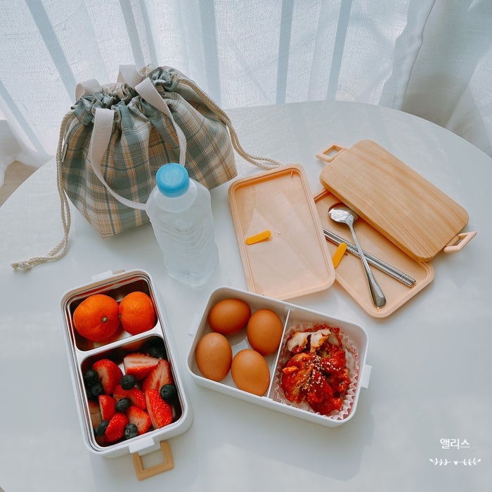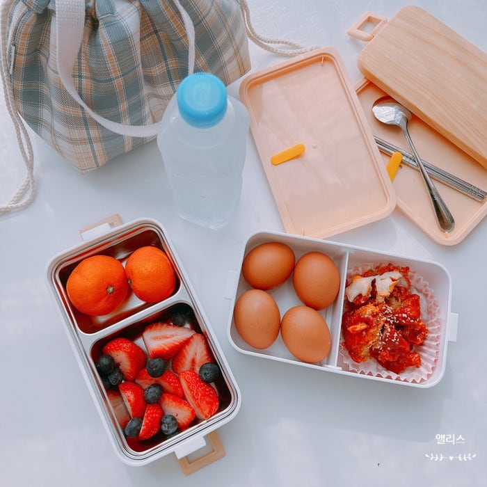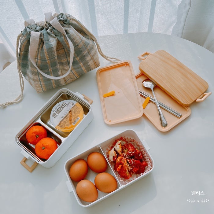 2구 스텐용기에 1구 스텐용기, 흰색칸 수저, 젓가락에 2단 도시락까지 구성이 매우 풍부하여 소풍 도시락뿐만 아니라 직장인 도시락으로도 안성맞춤이다