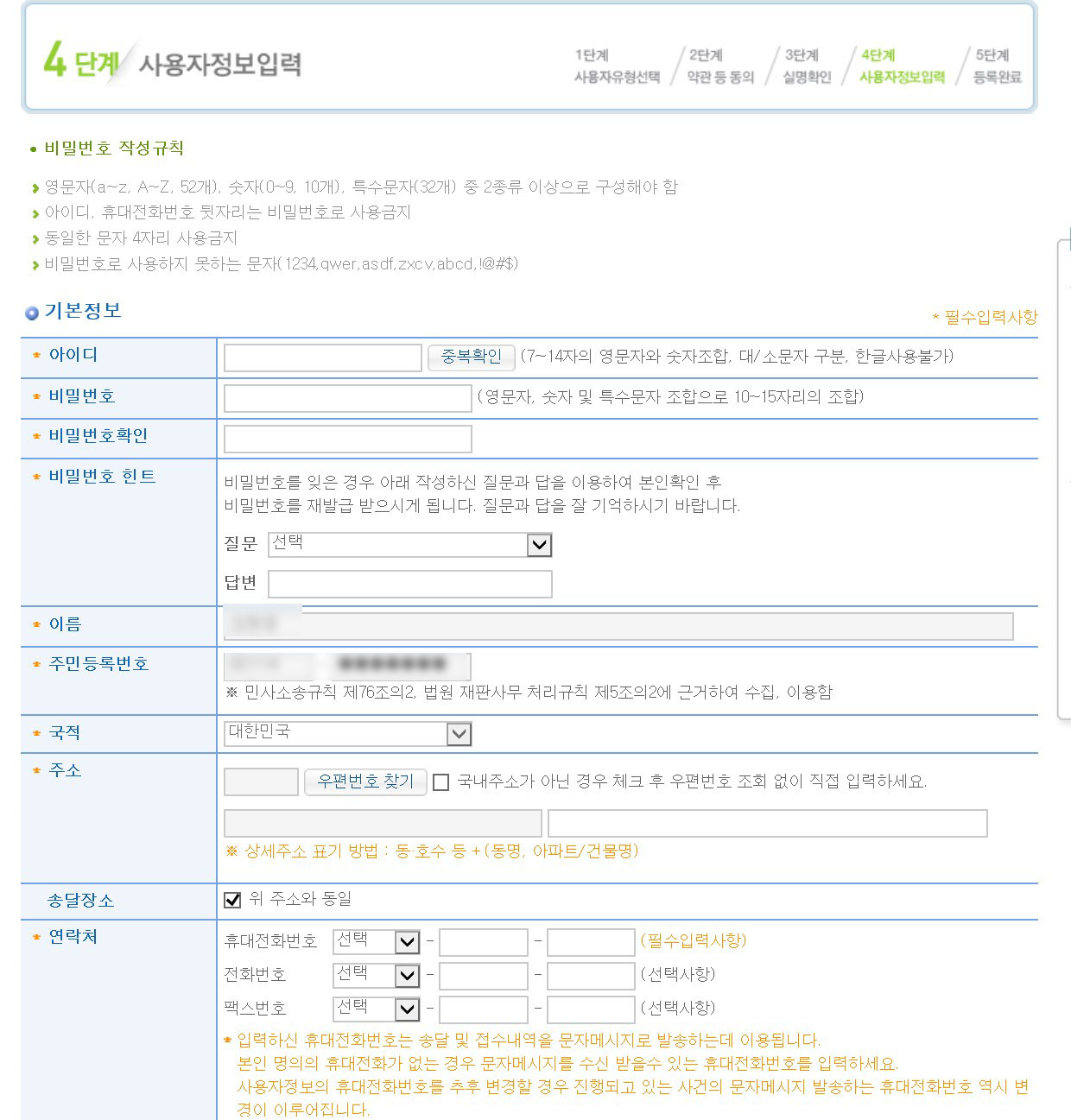 개명 허가 신청서를 계속 작성하고 등록을 누른다!