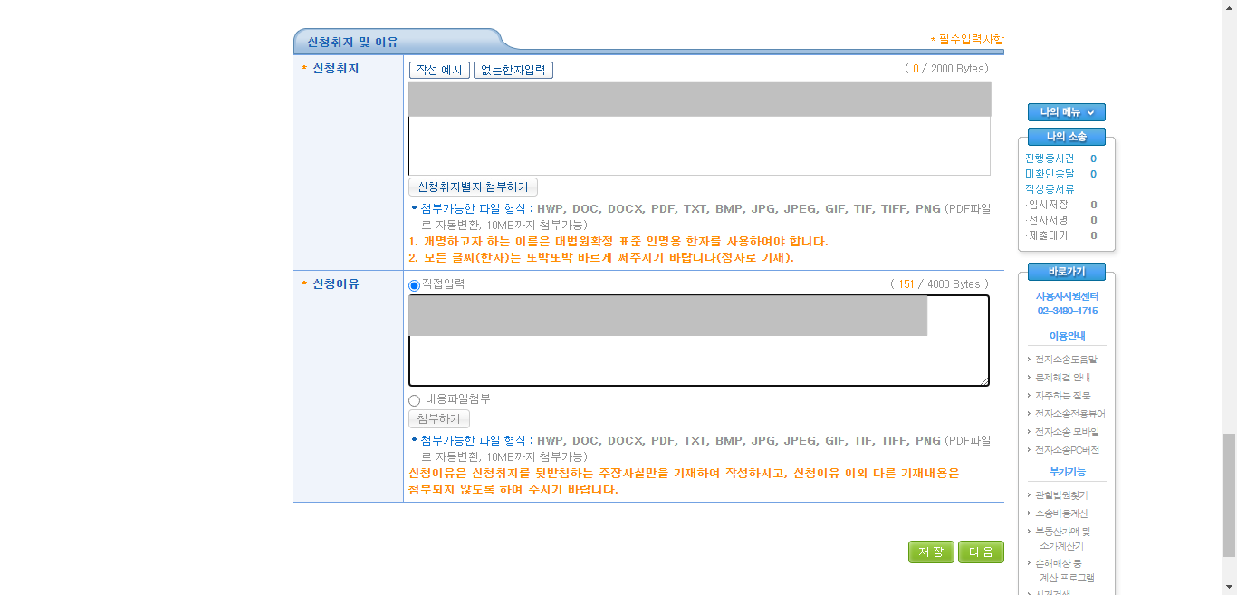 아래 신청취지 및 신청사유 작성란이 있는데, 신청취지는 ‘작성예시’를 누르면이렇게 나와. 이거 그냥 저 000 이것만 바꾸면 돼등록하고 넘어가서 아까 준비해둔 서류 등록하면 돼.하나 첨부해서 등록하고 이렇게 하나씩 해야 되는그렇게 파일 첨부까지 마치고 등록을 누르면 내가 작성한 것이 맞는지 파일 첨부는 제대로 되어 있는데 최종적으로 확인하는 창이 뜬다. 오류가 없으면 그냥 진행하면 돼.개명 신청할 때 소송 비용이 32000원이었나? 어쨌든 그 정도 걸리겠지만 나는 주말에 신청했기 때문에 소송비용 납부는 월요일로 했다.이것은 비용을 지불하기 전에 최종적으로 사건 접수된 창! 법원에서 허가가 나기까지 1~2개월이 걸린다.주민등록증도 면허증도 카드 통장 등 바꿀 것이 너무 많다.새로운 마음으로 새로운 삶을 시작해야지.파이팅