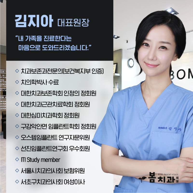 안녕하세요 잠원동치과 봄치과의원 치과보존과 전문의 김지아입니다.