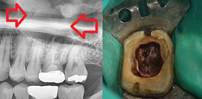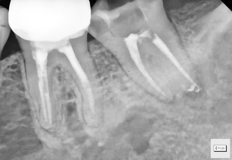 수술 시 걱정 치근을 둘러싼 염증 조직을 충분히 제거했습니다. 염증의 원인이 되는 치근을 절제한 후 밀폐가 쉬운 생체 친화성 시멘트인 mta로 충전했습니다.