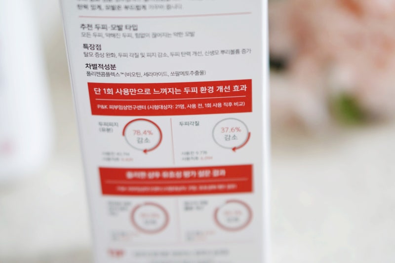 AFTER 현재 사용중인 탈모 샴푸 1위 닥터 포 헤어 폴리젠 샴푸로 씻은 후 두피 상태를 보여드립니다. 두피의 붉은기가 사라지고 특히 볼륨감이 풍부해진 부분이 느껴지지 않습니까? 🙂 별로 드라이도 하지 않았고, 그냥 흔들어 적당히 말리기만 해도 아직 수분이 남아있는데 모발이 풍부해 보여서 신기했어요.현빈 배우가 모델 제품으로 더 유명할 것 같은 닥터 포 헤어 폴리젠 샴푸, 요즘 사랑의 불시착을 재밌게 봐서 그런지 더 반가웠습니다. 리정혁 동료도 쓰는 탈모샴푸 ㅋㅋㅋ지난해 올리브영 상반기 매출액 기준 탈모샴푸 판매 1위에 빛나는 제품으로 네이버 탈모샴푸 최다구매평가 1위 CJ홈쇼핑 헤어신상품 1위까지!! 팜플렛에는 900만개라고 나와있는데 현재 국내 누적 판매량이 무려 1000만개라고 하니까 이정도면 탈모샴푸 판매 1위라는 수식어가 오버는 아니죠? 각종 뷰티 어워드에서도 다양한 수상 경력을 자랑하고 있습니다. 특히 미디어가 선정한 한국소비자만족지수 6년 연속 1위와 고객이 신뢰하는 브랜드 대상 4년 연속 1위라는 점은 그만큼 이미 많은 소비자들에게 인정받은 제품이라는 반증도 됩니다.패키징도 뭔가 약국에서 구입할 것 같은 느낌 ㅎㅎ 실제로 약국에서 팔았어요. 두피과학이라는 슬로건이 정말 잘 어울리는 것 같아요. 저는 실제로 요즘 샴푸할 때마다 두피케어를 받는 기분이라서 이 문구가 더 마음에 드는 느낌이네요.~두피의 근본적인 개선과 헤어의 건강한 아름다움을 위해 노력하는 글로벌 두피케어 브랜드 닥터포헤어는 서울은 물론 뉴욕, 베이징 등 세계 각국에 위치한 두피관리센터의 다양한 관리 프로그램을 통해 한국은 물론 전 세계인이 두피와 탈모를 해결하기 위해 노력하고 있습니다. 저도 기회가 된다면 가까운 닥터포헤어 두피관리센터에 방문해서 전문적인 두피케어 솔루션을 받아보고 싶기도 합니다. 국내에만 두피관리센터가 10개 정도 있었어요. :)지금 당장은 닥터 포 헤어 폴리젠 샴푸를 사용하는 것으로 두피 케어를 대신해 보도록 하겠습니다. 탈모 증상 완화와 두피 탄력 개선 효과가 입증된 폴리젠 샴푸는 특히 저처럼 힘없고 약한 볼륨감 없는 모발이나 탈모가 진행 중이거나 탈모를 관리하는 모발에 사용하면 더 좋다고 해서 저에게 딱 맞는 제품이 아닐까 싶습니다. 남녀를 떠나서 나이가 들면서 가장 중요한 게 머리의 양이잖아요? 머리카락이 풍성해야 훨씬 젊어 보이고 부티도 나오는 게 외모적으로 봐도 초라하지 않을 것 같아요.지금 당장은 닥터 포 헤어 폴리젠 샴푸를 사용하는 것으로 두피 케어를 대신해 보도록 하겠습니다. 탈모 증상 완화와 두피 탄력 개선 효과가 입증된 폴리젠 샴푸는 특히 저처럼 힘없고 약한 볼륨감 없는 모발이나 탈모가 진행 중이거나 탈모를 관리하는 모발에 사용하면 더 좋다고 해서 저에게 딱 맞는 제품이 아닐까 싶습니다. 남녀를 떠나서 나이가 들면서 가장 중요한 게 머리의 양이잖아요? 머리카락이 풍성해야 훨씬 젊어 보이고 부티도 나오는 게 외모적으로 봐도 초라하지 않을 것 같아요.딱 1회 사용만으로 느껴지는 두피 환경 개선 효과란… 솔직히 처음에는 너무 과장된 문구가 아닌가라는 생각이 들더라고요. 근데 막상 써보니까 고개가 끄덕여지더라고요. 진짜 뭐랄까? 두피가 청량해지는 느낌!! 정말 시원하고 향도 너무 좋았어요. 두피 피지가 많은 저한테도 딱 좋고 그 안에서 각질도 생겨서 걱정이 되는데 그것도 많이 개선이 됐어요.닥터포 헤어폴리젠 샴푸는 두피 강화에 도움을 주는 핵심 성분이 3가지가 들어 있는데 비오틴, 세라마이드, 사바르팜 열매 추출물이라고 합니다. 비오틴은 탄력있고 건강한 모발을 만드는 데 도움을 주며 세라마이드는 무너지지 않고 강한 두피를 만드는데 도움을 주고 사바르팜 열매 추출물은 풍부한 모발 유지에 도움을 준다고 합니다. 이 핵심 성분 3가지를 두피 모공보다 작은 나노 미세입자로 만들어 더 깊이 전달하는 폴리젠 콤플렉스 덕분에 두피 흡수율이 강화되고 한 번의 사용으로 두피 환경이 개선되는 효과를 얻을 수 있는 것입니다. 두피가 건강해야 머리가 건강해지는 건 당연한 거죠?닥터포 헤어폴리젠 샴푸는 두피 강화에 도움을 주는 핵심 성분이 3가지가 들어 있는데 비오틴, 세라마이드, 사바르팜 열매 추출물이라고 합니다. 비오틴은 탄력있고 건강한 모발을 만드는 데 도움을 주며 세라마이드는 무너지지 않고 강한 두피를 만드는데 도움을 주고 사바르팜 열매 추출물은 풍부한 모발 유지에 도움을 준다고 합니다. 이 핵심 성분 3가지를 두피 모공보다 작은 나노 미세입자로 만들어 더 깊이 전달하는 폴리젠 콤플렉스 덕분에 두피 흡수율이 강화되고 한 번의 사용으로 두피 환경이 개선되는 효과를 얻을 수 있는 것입니다. 두피가 건강해야 머리가 건강해지는 건 당연한 거죠?닥터포 헤어폴리젠 샴푸는 두피 강화에 도움을 주는 핵심 성분이 3가지가 들어 있는데 비오틴, 세라마이드, 사바르팜 열매 추출물이라고 합니다. 비오틴은 탄력있고 건강한 모발을 만드는 데 도움을 주며 세라마이드는 무너지지 않고 강한 두피를 만드는데 도움을 주고 사바르팜 열매 추출물